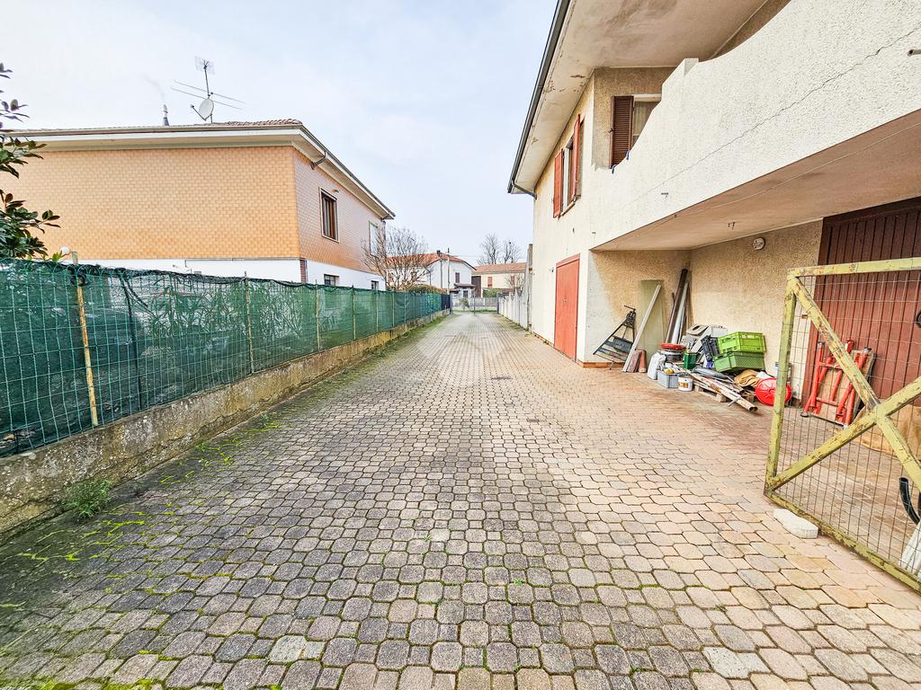 Gli spazi esterni ampliano ulteriormente il valore della proprietà. Sul fronte si sviluppa un giardino di generose dimensioni che valorizza l’ingresso della villa, mentre sul retro troviamo un ampio cortile con orto, perfetto per chi ama vivere l’outdoor in modo autentico. Completano la proprietà una spaziosa cantina, un locale lavanderia e il box auto, elementi che rendono l’abitazione pratica e completa sotto ogni aspetto.